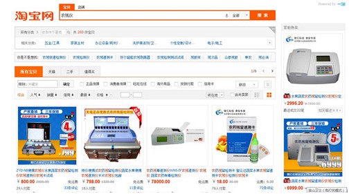 接下來點(diǎn)擊“農(nóng)殘儀”關(guān)鍵詞進(jìn)入天貓網(wǎng)頁搜索頁面,就會(huì)出現(xiàn)不同類型和價(jià)目的農(nóng)殘儀。首先映入眼簾的是智云達(dá)ZYD-NB便攜式水果蔬菜農(nóng)藥殘留速測(cè)儀,還有6通道和12通道農(nóng)藥殘留速測(cè)儀,農(nóng)藥殘留速測(cè)卡等多款智云達(dá)的代表性快檢產(chǎn)品都呈現(xiàn)在搜索頁面中,可見智云達(dá)天貓店鋪的快檢產(chǎn)品已牢牢占據(jù)淘寶熱搜排行榜搜索排名第一的優(yōu)勢(shì),智云達(dá)店鋪在淘寶中保持快檢產(chǎn)品品牌第一是毋庸置疑的。