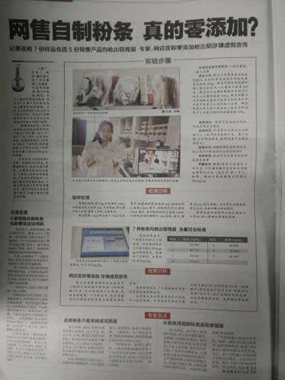 北京智云達提醒廣大消費者由于本次檢測粉絲粉條沒有辦法查看生產日期,生產標簽,所以在購買粉絲粉條時,請到正規超市購買,在購買時不能貪圖便宜購買不合格粉絲粉條。