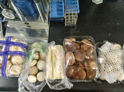 樣品:一共為九個菇類樣品。七個為網(wǎng)上購買菇類,兩個為市場購買菇類。