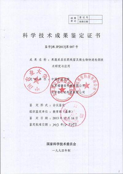最終,智云達(dá)參與完成的“果蔬采后農(nóng)藥殘留及微生物快速檢測(cè)技術(shù)研究與應(yīng)用”、 “精煉食用油摻偽快速檢測(cè)技術(shù)研究與應(yīng)用項(xiàng)目”順利通過教育部科技成果鑒定,教育部已于12月25日向完成單位及各位完成者頒發(fā)了科學(xué)技術(shù)成果鑒定證書,這是對(duì)智云達(dá)研發(fā)能力的極大認(rèn)可,智云達(dá)將加倍努力研發(fā)更多、更好的產(chǎn)品以保障我國(guó)食品安全,使智云達(dá)真正成為行業(yè)研發(fā)的領(lǐng)導(dǎo)者和行業(yè)第一品牌。