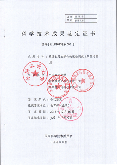 12月16日,由智云達(dá)與中國(guó)農(nóng)業(yè)大學(xué)、福德安共同參與的“果蔬采后農(nóng)藥殘留及微生物快速檢測(cè)技術(shù)研究與應(yīng)用”、“精煉食用油摻偽快速檢測(cè)技術(shù)研究與應(yīng)用項(xiàng)目”在中國(guó)農(nóng)業(yè)大學(xué)食品學(xué)院會(huì)議室參加了教育部組織的科技成果鑒定。