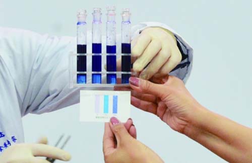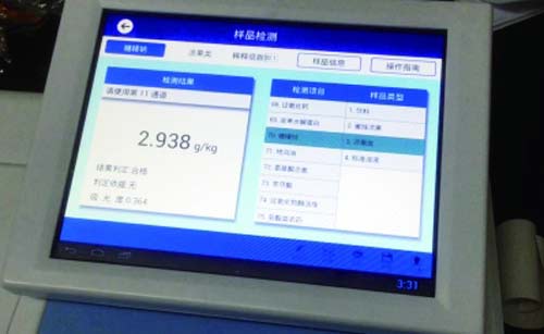 北京智云達技術工程師楊老師和王老師首先將樣品粉碎,再通過使用北京智云達自主研發生產的快速檢測產品:明礬速測盒、ZYD-FI,對樣品溶液中的糖精鈉和明礬含量進行檢測。