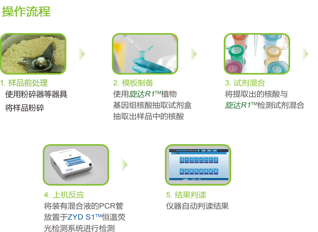 旋達R1?轉基因檢測系列試劑,基于恒溫擴增技術平臺,以特別設計的2對特異性識別檢測靶標的獨有基因序列,能快速、準確地鑒定檢測出樣品中是否含有特定轉基因成分。