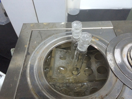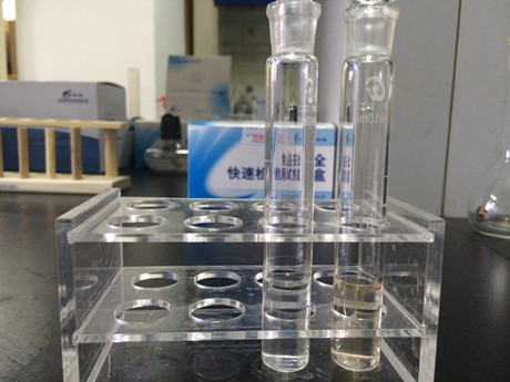 3、樣品管:吸取2mL樣品處理液于10mL比色管中,加入2mL山梨酸試劑一,加上蓋子,搖勻,于沸水浴中加熱7分鐘,立即加入2mL山梨酸試劑二,搖勻,繼續沸水浴加熱10分鐘,取出涼水冷卻3分鐘。