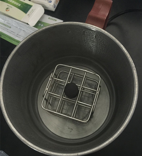 將待測油樣混勻,用0.2 mL塑料吸管取油樣,滴6滴于玻璃比色管中,加入1 mL試劑1,搖動30秒,沸水中煮5分鐘。