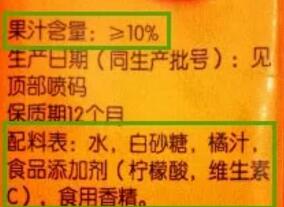 例如,我們看到這款產(chǎn)品類(lèi)別叫“橘子汁飲料”,說(shuō)明并非純果汁。