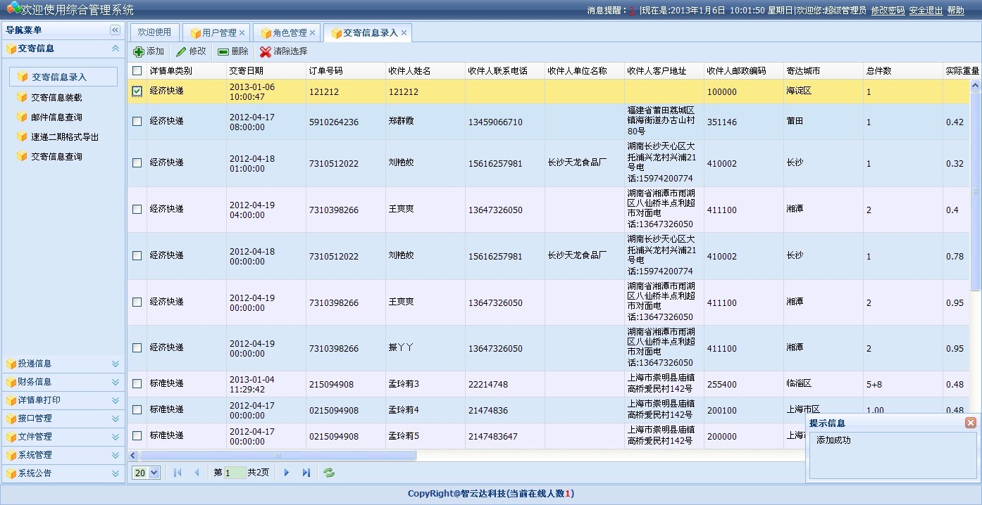 (3)詳情單(入網公司)信息打印。只打印入網公司的信息(即寄件人的信息)